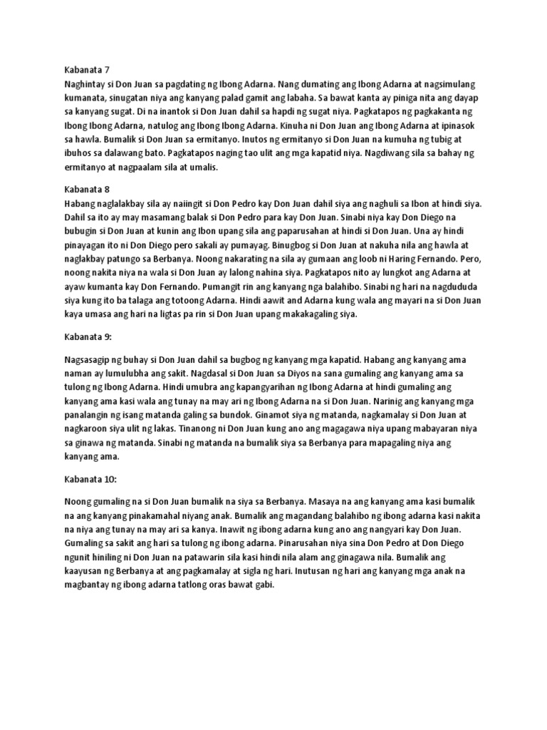 Sabi ni Donya Maria na mayroon na siya ibang reyno kaya si Don Pedro naging hari ng Berbanya. Read Kabanata 17 18 19 and 20 from the story Ang Buod ng Ibong Adarna. Pagkatapos ng isang buwan nakaratin si don juan sa de los cristal.
