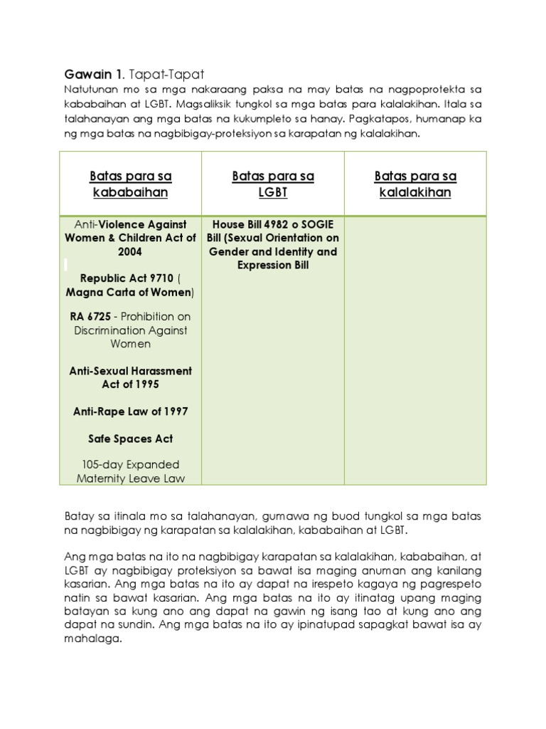 5 May tatlong uri ng batas ang pambansang batas ang ordinansa at ang kautusang pambarangay. 20042021 Gawain sa Pagkakatuto 3. Pumili ng isa sa sumusunod na kalagayan.